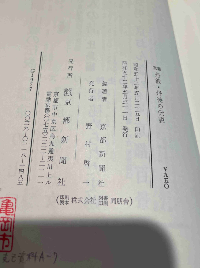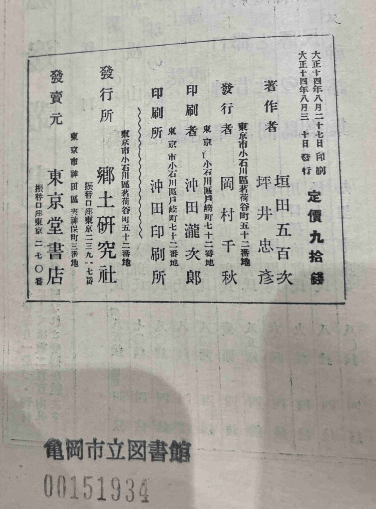 垣田五百次,坪井忠彦編,1925. 『口丹波口碑集』郷土研究社.