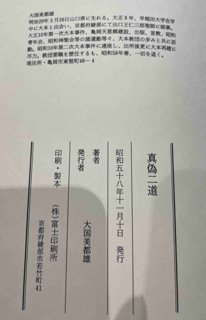 いま,関心がある分野ではないが,次の文献に偶然出会えた。大国美都雄さんの自伝と,現大本の出版物である。後者はかなりの出版費用がかかっているようだ。