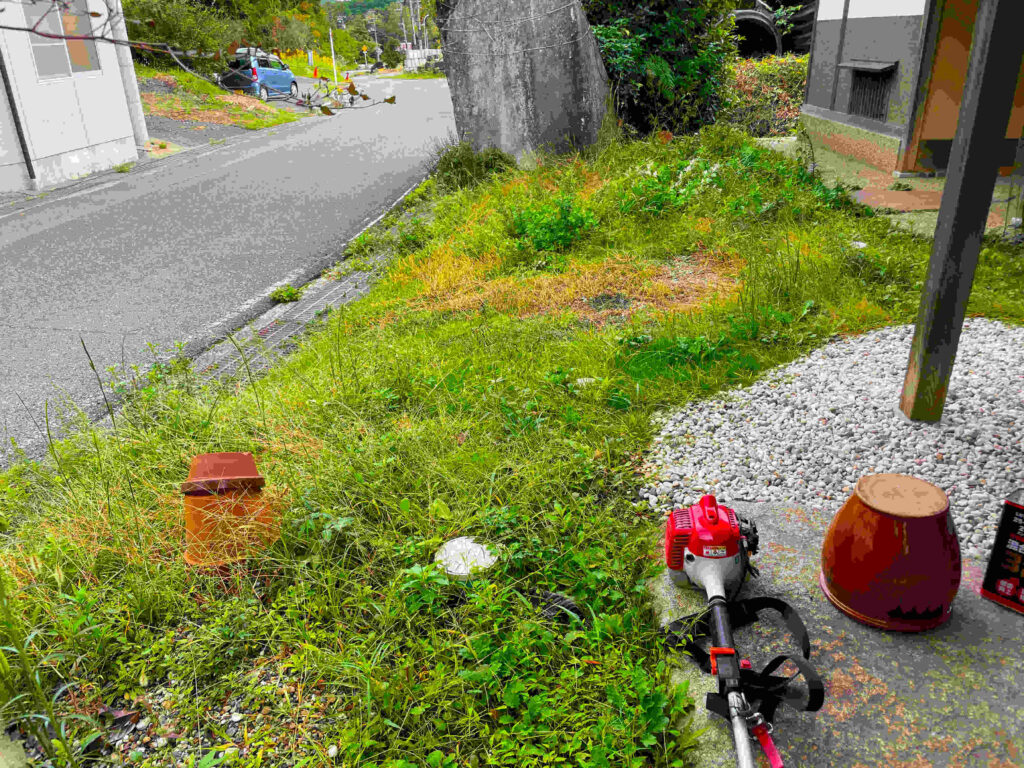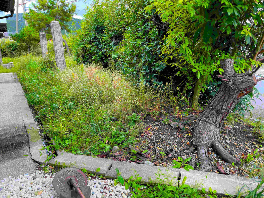 18日に亀岡市立図書館に出かけて,はじめてタニハで一人で宿泊し,玄関前だけ何とか,刈り払いして,また,図書館に出かけた。ぼくとして異例の合理的動きであった。次の4枚は刈る前だ。