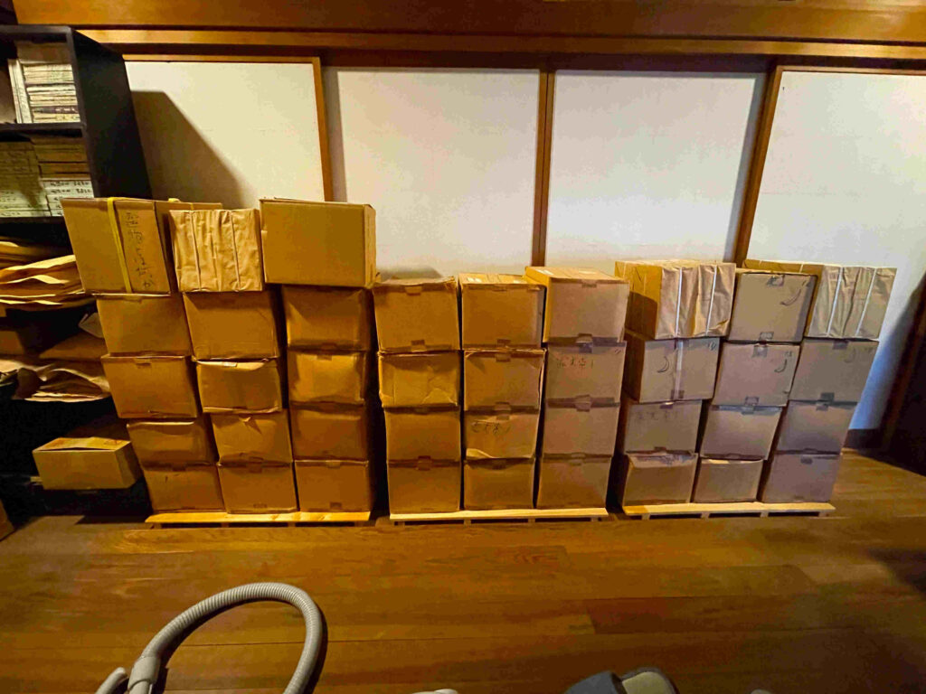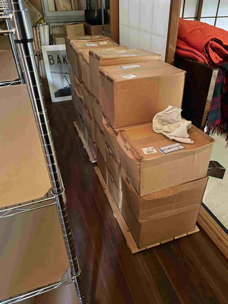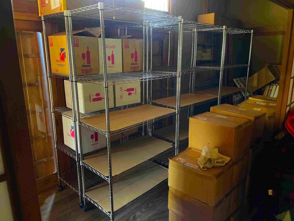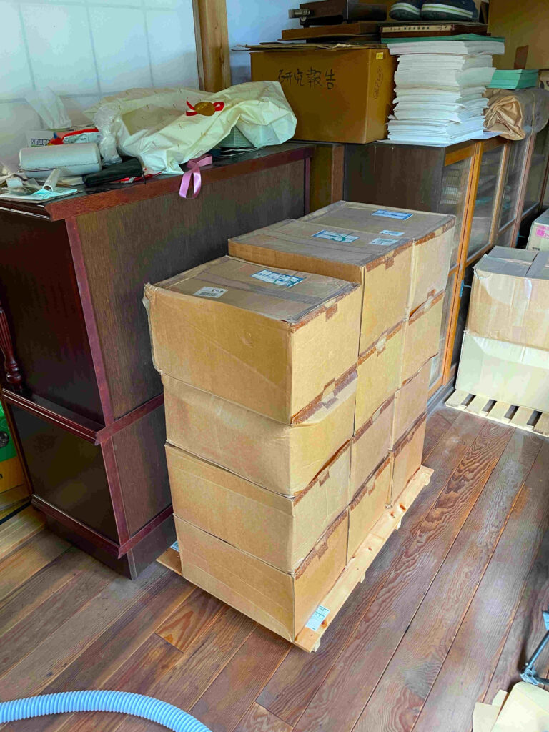 父の生前から床に直置きであった。死後何年かして,スノコを敷いてその上に段ボール箱を4段重ねして保管してきた。あまりに未整理感があって,ドウシシャのメタルラックに載せてきたのであるが,キャスターの床の接点が小さく,床に大きな荷重がかかっていることは十分にわかっていた。